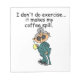 Mildred é uma senhora idosa cabeleira de cinzas com algumas opiniões fortes bonito! Nessa design de exercício engraçado, ela diz: "Eu não faço exercício...faz o meu derramar de café." Tema humorístico de exercícios T-shirts, canecas, bolsas, cartões, autocolantes, ímanes, chaveiros, ornamentos, e mais, com certeza para que você e os outros se divirtam!