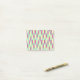 Este bloco de notas de Posto tem um design de geometria de um fundo de retângulos verde-marinho e azul-claro com ovais amarelos e cor-de-rosa no topo.