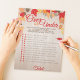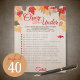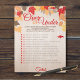 Pacote Notepad Game de Festa de Chá de panela Superior ou Inferior de 40. Fácil de rasgar e escrever. Apresentando lindas folhas brilhantes de queda em um fundo de madeira lavada. Peça aos seus convidados que adivinhem se a declaração terminou, abaixo ou igual à resposta correta (da noiva). A pessoa mais correta ganha! As instruções são editáveis usando o recurso "Editar este design".