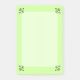 Pinos nos cantos parecem "tachinhas de ferro molhadas". Os pinos abaixam os quatro cantos do centro mais claro da página. Sua escolha de cor de fundo forma uma borda mais escura nas bordas. O padrão é uma cor de fundo verde média.