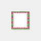 Notas pegajosas com um padrão de melancia fofo. Casca verde em camadas de listras junto com uma camada de listras cor-de-rosa com dentro de sementes pretas. Diversão e design de verão. Um quadrado em cima para escrever dentro.