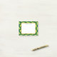 Notas pegajosas com um padrão repetitivo fofo com cobertores verdes de azeitona em um fundo verde escuro. Um retângulo branco colocado sobre o topo com uma borda falsa de folha de ouro. Personalize com seu próprio texto.