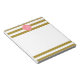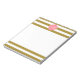 Ouro metálico monograma e bloco de notas rosado. A design apresenta um padrão listrado de ouro metálico e branco e uma forma quatrefoil cor-de-rosa no meio com sua inicial personalizada.
