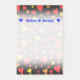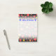 Esta nota divertida design apresenta um padrão que consiste em formas cardíacas de vários tamanhos, e cores coloridas como vermelho, laranja e amarelo. Pode-se dizer que as formas cardíacas parecem flutuar. Ele também apresenta um nome personalizado próximo ao topo em texto azul, entre duas formas cardíacas. [~Z0000123]