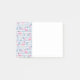 Notas pegajosas com um padrão com uma vibração de verão divertida. flamingos e abacaxis cor-de-rosa, colocados sobre um padrão listrado azul claro com folhas e corações ao redor.