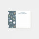 Notas pegajosas com um padrão festivo caprichoso. Ursos polares, renas, árvores, raposas e flocos de neve. Num fundo verde escuro.