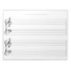 Este artigo manuscrito de música tem 2 grandes grandes guardas em cada página que é perfeito para crianças e crianças aprenderem a escrever notas musicais. O grande funcionarios com clichê de triplo e baixo é ideal para escrevendo música piano, aprender acordes básicos e progressões de acordes como I - IV - V ou aprender a ler e escrever música como o nível mais básico. Esta regra de largura extra permite um cabeçalho de nota de 1/4", que é cerca de 4 vezes o tamanho usado na música para adultos. Este bloco de notas é a ferramenta educacional perfeita para os seus jovens estúdios favoritos de música ou lições de música e salas de aula de jardim de infância/pré-escola. Para crianças mais velhas e estudantes de música, procure por uma ampla regra ou um papel de carta musical do tamanho adulto por Mozartini no Zazzle.
