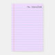 Notas adesivas de papel para notebook com linha roxa. Personalize-o adicionando seu nome. Excelente como material de escritório ou de volta à escola.