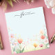 Este bloco de notas personalizado apresenta um delicado prado prado de flor silvestre de aquarela com tons pastéis macios, criando um design pacífico e elegante. Perfeito para amantes da natureza, entusiastas do jardim e fãs de papelaria floral. Personalize o texto no topo para um toque exclusivo, fazer-o ideal para o registro em diário, emissão de notas ou oferta.