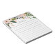O bloco de notas floral chico apresenta uma borda superior de pêssego e flores, botões e botânicos verdes cor-de-rosa esbranquiçados. Personalize com duas linhas de texto personalizado em letras modernas; mostradas com a saudação francesa "bonjour" e o seu nome. Pautado.