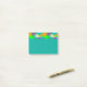 Este bloco de notas de Posto tem um design de uma escola de peixes em verde, azul, laranja, amarelo, vermelho, rosa e azul-esverdeado nadando no oceano.