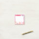 Esta nota adesiva rosa fofinha personalizada é a maneira perfeita de adicionar um toque de estilo pessoal às suas tarefas e notas diárias. A brilhante e atraente sombra de rosa vai iluminar a sua mesa e trazer um estilo único e bonito para a sua organização. Com a opção de adicionar seu nome ou iniciais, esta nota se torna uma extensão da sua personalidade. O tamanho conveniente o torna perfeito para juntar lembretes ou deixar mensagens doces para os entes queridos. Torne cada dia um pouco mais claro e mais personalizado com esta nota rosa de Kawaii personalizada.