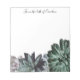 Junte notas e lembretes com um Bloco de Notas de Suculentes personalizado. O Notepad design apresenta uma coleção de uma variedade de plantas succulentes em diferentes cores. Itens de papelaria correspondentes adicionais disponíveis com este design também. Se precisar de assistência com personalização, entre em contato comigo diretamente.