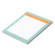 Um bloco de notas perfeito para notas ou listas rápidas. Este bloco de notas personalizado apresenta um fundo quatrefoil teal com uma banda laranja para personalização com um nome. Itens correspondentes disponíveis em Impressoras digitadas