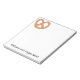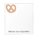 Adicione um slogan ou nome para criar um presente personalizado com um tema de pretzel. Imagem mostra um nó de pretzel em estilo alemão do pão (ou poderia ser um salgadinho de pretzel amarrado) estudado com cristais de sal.