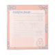 Fitas deliciosas trazem um toque suave e romântico para suas notas. Personalize com seu nome ou título — perfeito para listas, planos e pensamentos diários. Este bloco de notas também é ideal para colocar dentro na sua mala e fazer com que a tomada de notas seja conveniente. Um presente adorável para aniversários ou favores de casamento!