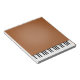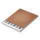 Este notebook divertido para fãs de música se parece com um teclado de piano com uma área marrom para escrevendo.
