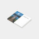 Notas pegajosas com uma bela fotografia de um píer de madeira esticado sobre um lago calmo. O céu noturno coberto de estrelas e uma bela lua de cheio.