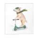 Leitão cinto num patinete vestindo chapéu e cachecol! Feliz passeio!