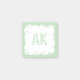 Pequenas notas adesivas monogramadas em verde-claro com pinceladas brancas apressadas e uma fonte legal de stencil em verde-claro onde você pode juntar notas, mensagens, coisas para lembrar, coisas para fazer, pensamentos e objetivos diários ou o que mais você precisar.