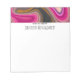 A notepad with a groovy looking abstract design. Pink and black colors mix and mingle together in a swirling motion. Sprinkles of faux gold glitter in between the layers.
