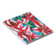 com a arte original de uma pintura aquosa de Sacha Grossel, de uma flor líbia brilhante, rosa-quente, do dia. Este assunto botânico tem pétalas cor-de-rosa intensamente contra fundo azul-céu num design floral colorido. A visão de perto e macro das flores é popular entre amantes florais de design.