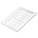 Um bloco de notas do planejador de tarefas para cada dia da semana: uma lista de tarefas a fazer e compromissos não a perder. Pode ser utilizado numa base individual para cumprir objetivos e evitar a procrastinação, mas também para distribuir e organizar tarefas dentro da família, do escritório ou do lar.