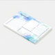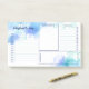 Bloco de notas adesivo de planejamento diário personalizado impresso com manchas azuis de aquarela, uma programação das 7:00 às 19:00, uma caixa de seleção para fazer lista e espaço para notas, planejamento de refeições ou qualquer outra coisa que você precise. Basta mudar o texto para se adequar ao propósito de suas notas de planejamento diário. Personalize adicionando seu nome em um roteiro encantador em azul marinho. Manchas de aquarela diária organizando posto-it com manchas de aquarelas azuis e lacrimogêneas personalizadas com seu nome e suas categorias.