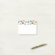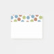 Este bloco de notas de Posto tem um design geométrico de pontos azuis, verdes e castanhos.