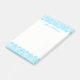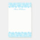 Bonito posto grande, o bloco de anotações é feito em branco, com uma aparência azul-herdada, na parte superior e inferior do bloco. O texto azul personalizado, no topo, está pronto para personalizar.