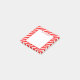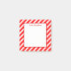 Tiras quadradas personalizadas com letras vermelhas em um padrão diagonal de listras vermelhas e brancas.