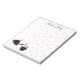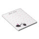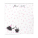 Um bloco de notas maravilhoso para qualquer coisa, desde notas de amor, para escrevendo uma lista de compras. Tem um fundo branco com espirais cor-de-rosa. Um bule de chá e uma xícara de chá cor-de-rosa e pretos sentam-se no fundo. O chá que sai solta a mãe. Você personaliza o texto no topo.