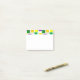 Este bloco de notas de Posto tem um design geométrico de quadrados em roxo, amarelo e verde espalhados com seus contornos.