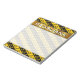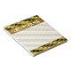 Este design do bloco de notas apresenta um padrão de listras negras e amarelas contendo símbolos musicais de 16 notas. Isto poderia fazer um presente de excelente para um músico, um compositor, ou alguém que gosta de ouvir música. Ele também apresenta um nome personalizável dentro de uma área de ouro falso como colorida. [~Z0000037]