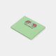 Esta design tem um fundo verde na frente. Tem duas pequenas joias curiosas com olhos bonitos. Há um lugar para personalizar o nome.