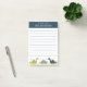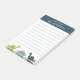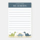 Blocos de notas adesivas com tema de dinossauro para professor de ciências com modelo de nome em fundo azul. Um bloco de papel de escrita personalizado fofo que é pautado e apresenta estrelas em aquarela, triceratops, estegossauro e braquiossauro. Este bloco de notas adesivas com tema de dinossauro seria um presente atencioso de apreciação ao professor ou papelaria divertida de volta às aulas para um cuidador de creche, professor de pré-escola ou professor de jardim de infância.