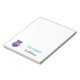 Professores Personalizados de Coruja Púrpura e Cuta Notepad. Da mesa de anotações para seu professor favorito. Personalize estas notas bonitas em roxo escuro e cursivo. Font lê "FROM THE DESK OF" no bloco impressão. Coruja branca, roxa, rosa e colorida, no canto inferior destas notas personalizadas.