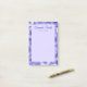 Sticky notes featuring your name in an elegant script font with custom text below. Around the edge is a purple flower pattern.
