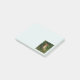 Notas pegajosas com uma fotografia com uma raposa de bebê fox fofa e pele vermelha e branca. Cercados por folhas e gramíneas verdes e peludas.