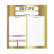 Um bloco de notas moderno e útil para receitas culinárias. O design consiste de um fundo metálico de ouro falso com áreas vazias onde você pode anotar todos os dados importantes para preparar uma receita. O texto é totalmente personalizável.