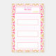 As Resoluções de Ano Novo cor-de-rosa, o objetivo do rastreador Posta as notas. Conecte-se ao seu frigorífico, repare no conselho, nas paredes ou no arquivo do gabinete. Escreva em suas tarefas, planos ou lista de tarefas pendentes. Edite o título no topo usando o botão Personalizar. Há espaço abaixo do título para escrever seu objetivo ou tema principal; e a data. Abaixo estão três espaços para escrever em seus itens, juntamente com caixas para que você faça marcas de ponto. A borda é um padrão geométrico alegre de blocos coloridos em cores de verão de verde e rosa. Um hack ou suporte útil para adultos ou crianças com TDAH que precisam de ajuda para se manterem no topo das tarefas. Excelente para organizadores, planejadores de gestão de projetos e pessoas que gostam de acompanhar as suas atividades diárias, ou que adoram maximalismo ou decor de dopamina. Um presente bonito para senhoras, meninas, ou um professor que gosta de se organizar. Utilização para o planeamento de férias e férias, festas, trabalhos escolares e de escritório, trabalhos de casa da criança e atividades escolares.