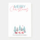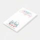 Uma Carta de Natal Retroativa Notas da Pós-it® ilustram uma cena de natal de inverno com Papais noeis cavalgando um trenó puxado por seus rendedores em uma cena da noite da floresta iluminada por uma estrela. Cor preta, vermelha e turquesa. O Nome da Família pode ser personalizado