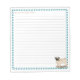 Faça um ótimo presente para os amantes de pug ou algo especial para você mesmo. Nosso design personalizado de Pug e Rosas lhe dá espaço para personalizar as páginas deste bloco para incluir seu nome, apelido ou sua própria frase. A borda na cor azul-turquesa pode ser alterada para uma cor de sua escolha. Clique no botão Personalizar para ver uma paleta de cores de fundo. Se preferir uma versão sem linhas, você pode limpar a imagem que contém as linhas. Use este bloco de notas para escrever, anotar, rabiscar ou desenhar. A imagem no canto inferior direito mostra um pug castanho segurando algumas rosas na boca.
