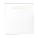 Bloco de notas moderno profissional com nome em estilo de letra manuscrita moderna em ouro e texto personalizado em estilo de fonte sans serif moderna em ouro sobre fundo branco.