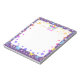 Este bonito bloco de notas de nome de rosto unicórnio da sereia para crianças pode ser personalizado usando as ferramentas online. Design apresenta estrelas e flores cor-de-rosa, roxas, lacrimejantes, com um toque de brilho falso.