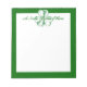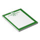 Bloco de notas personalizável branco de 5,5" x 6" com borda verde e imagem de uma shamrock verde e branco esboçado. Consulte notebook correspondente. Veja a Rua inteira. A coleção do Bloco de Notas do Dia de Patrick sob a categoria OFFICE na seção HOLIDAYS.