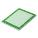 Bloco de notas de 5,5" x 6" com uma imagem de shamrocks verdes envolventes em verde e um espaço escrevendo branco e transparente. Veja a Rua inteira. A coleção do Bloco de Notas do Dia de Patrick nos TOUCHES ESPECIAIS | Seção Favoritos para festas. Este produto não está associado nem afiliado ao titular original dos direitos de autor.