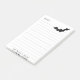 Estas notas pegajosas do Halloween foram desenhadas com um simples morcego negro voando no canto superior direito. A palavra "Nota:" está no canto superior esquerdo. Há linhas desbotadas no fundo branco. Seu nome será impresso na parte inferior.
