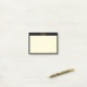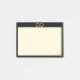 Notas adesivas com símbolo de infinito dourado elegante em moldura preta e fundo amarelo claro. O texto "Tenha um Bom Dia" pode ser personalizado.