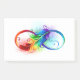 Símbolo infinito desenhado artificialmente com uma bela pena arco-íris sobre fundo branco. Tatuagem.